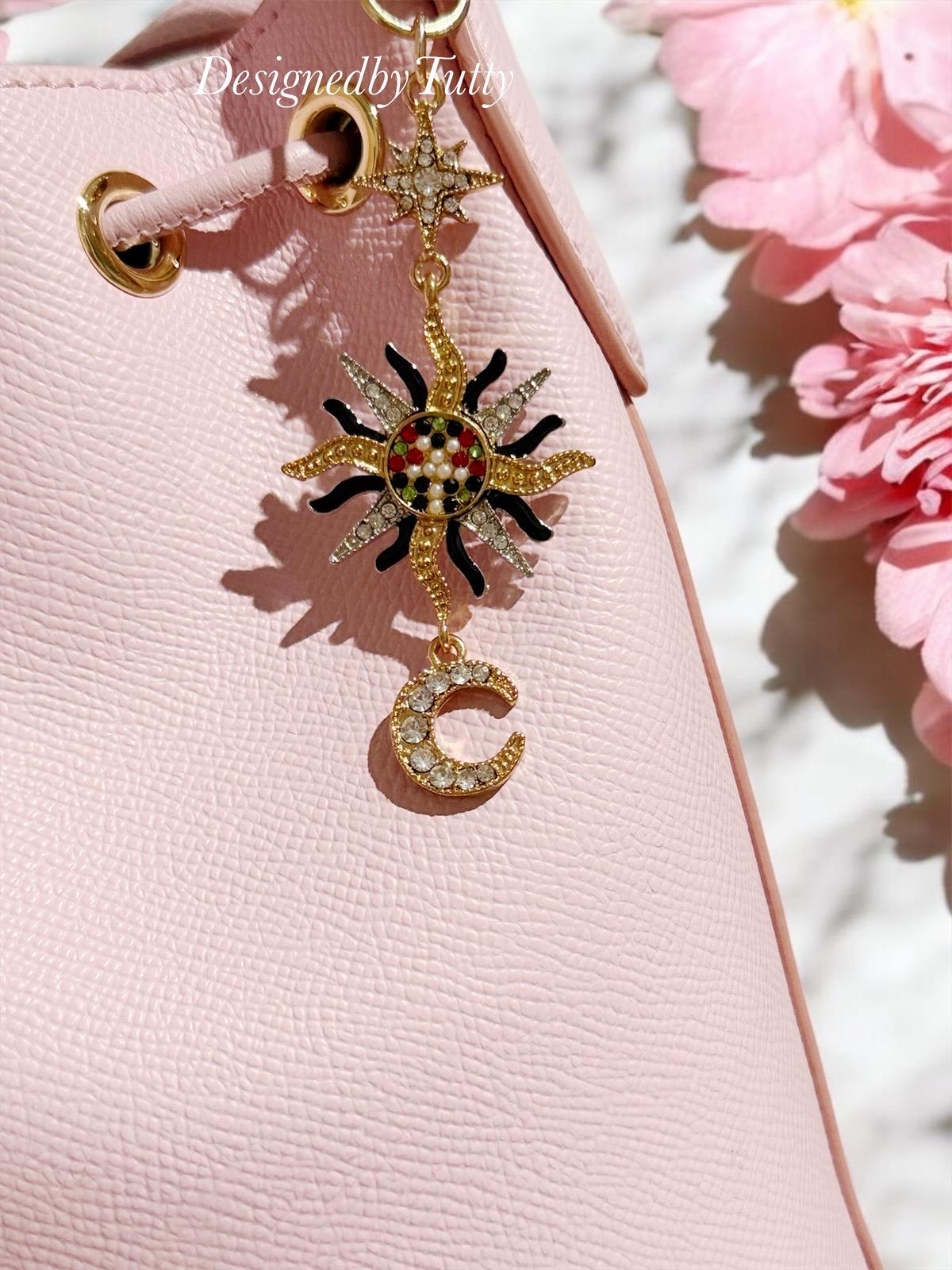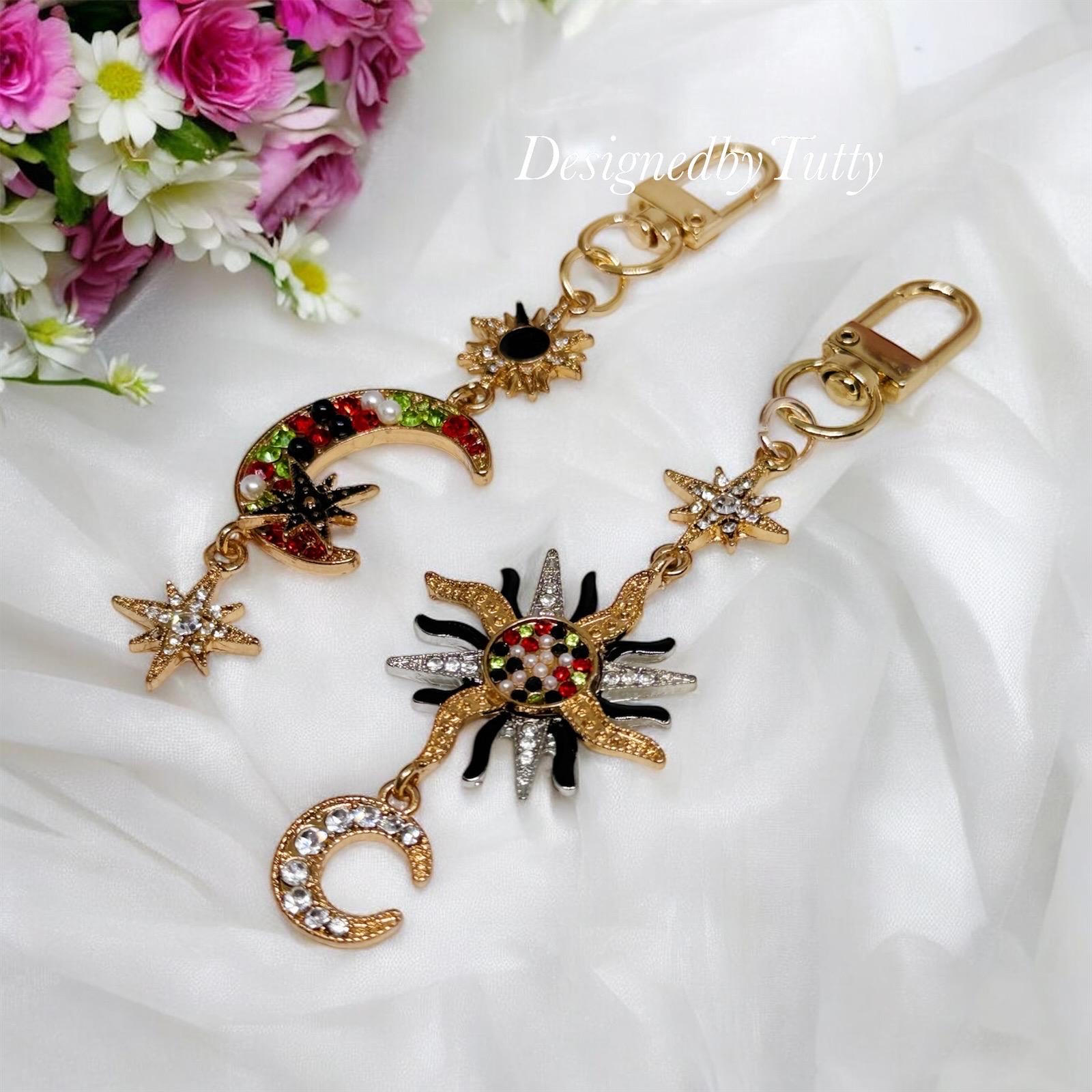 Celestial bag charm | key chain | golden chain with moon and sun | key chain | lanyard | y2k chain | bag lover gift