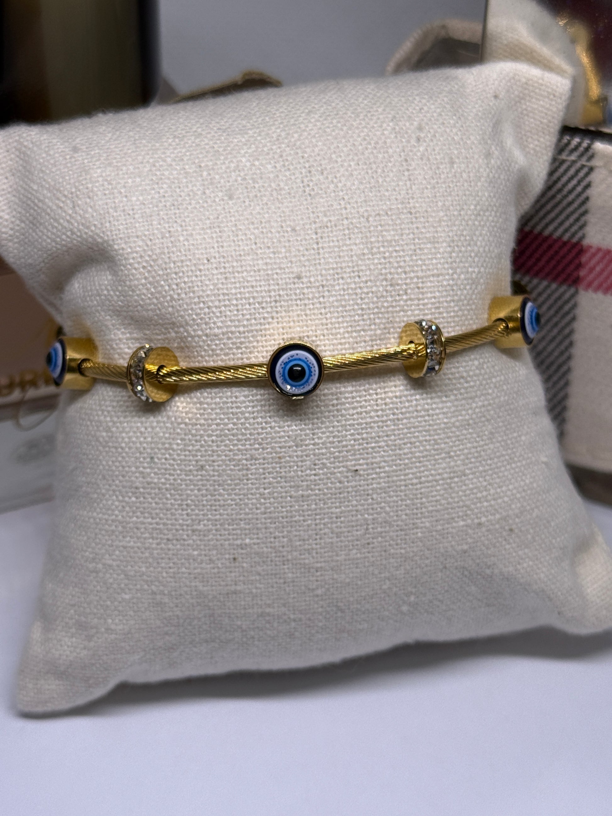 Gold evil eye bracelet with cubic zirconia and rhinestone details
