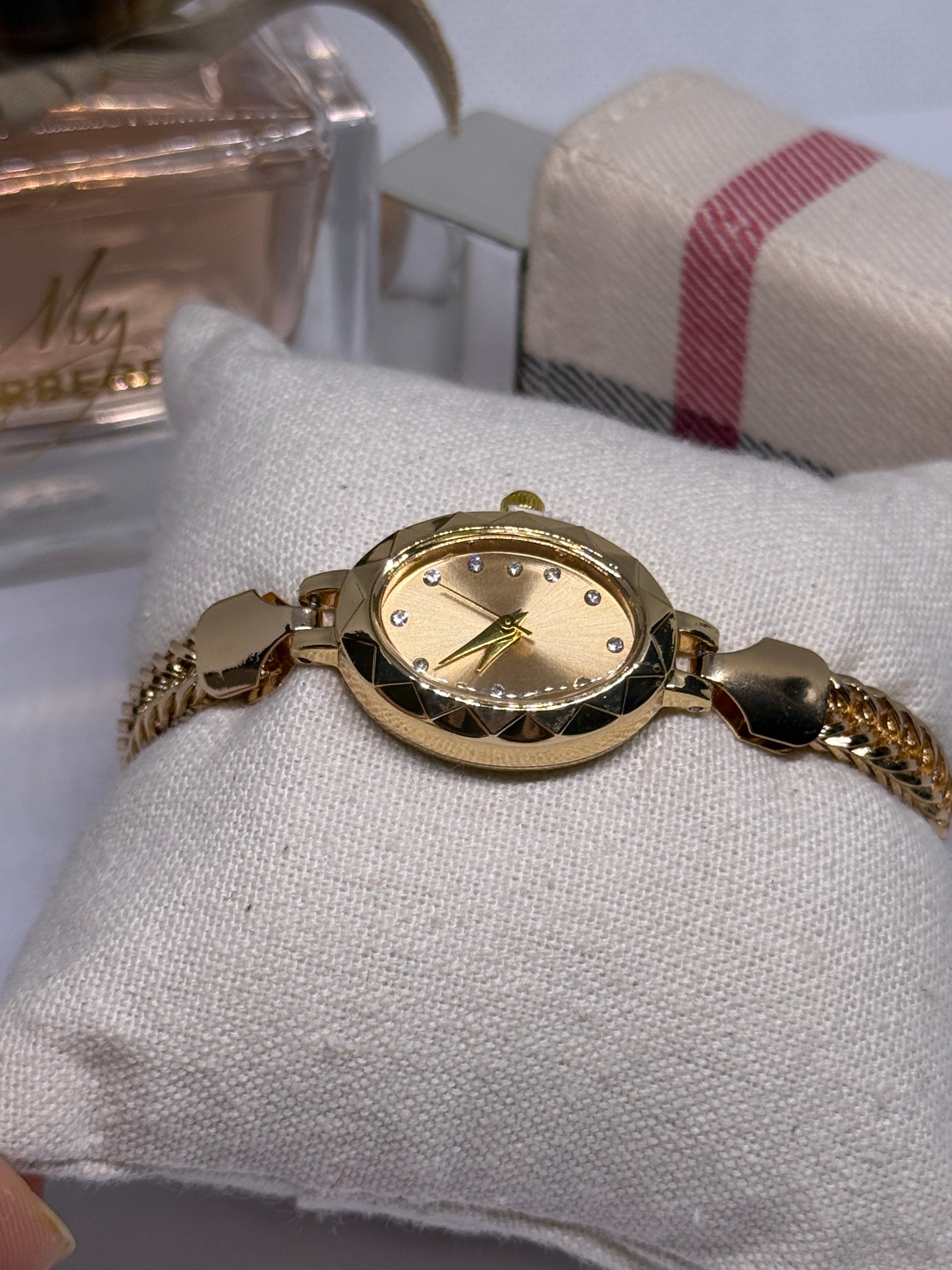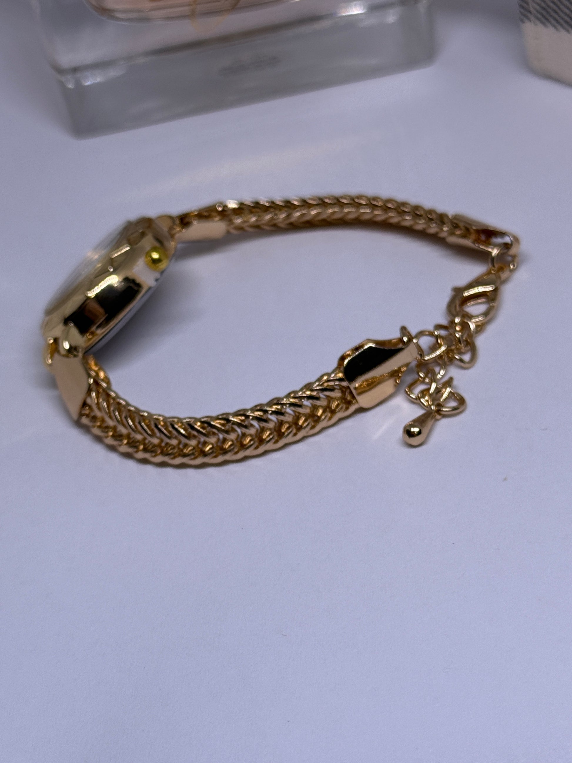 Gold tone analogue watch with gold tone bracelet
