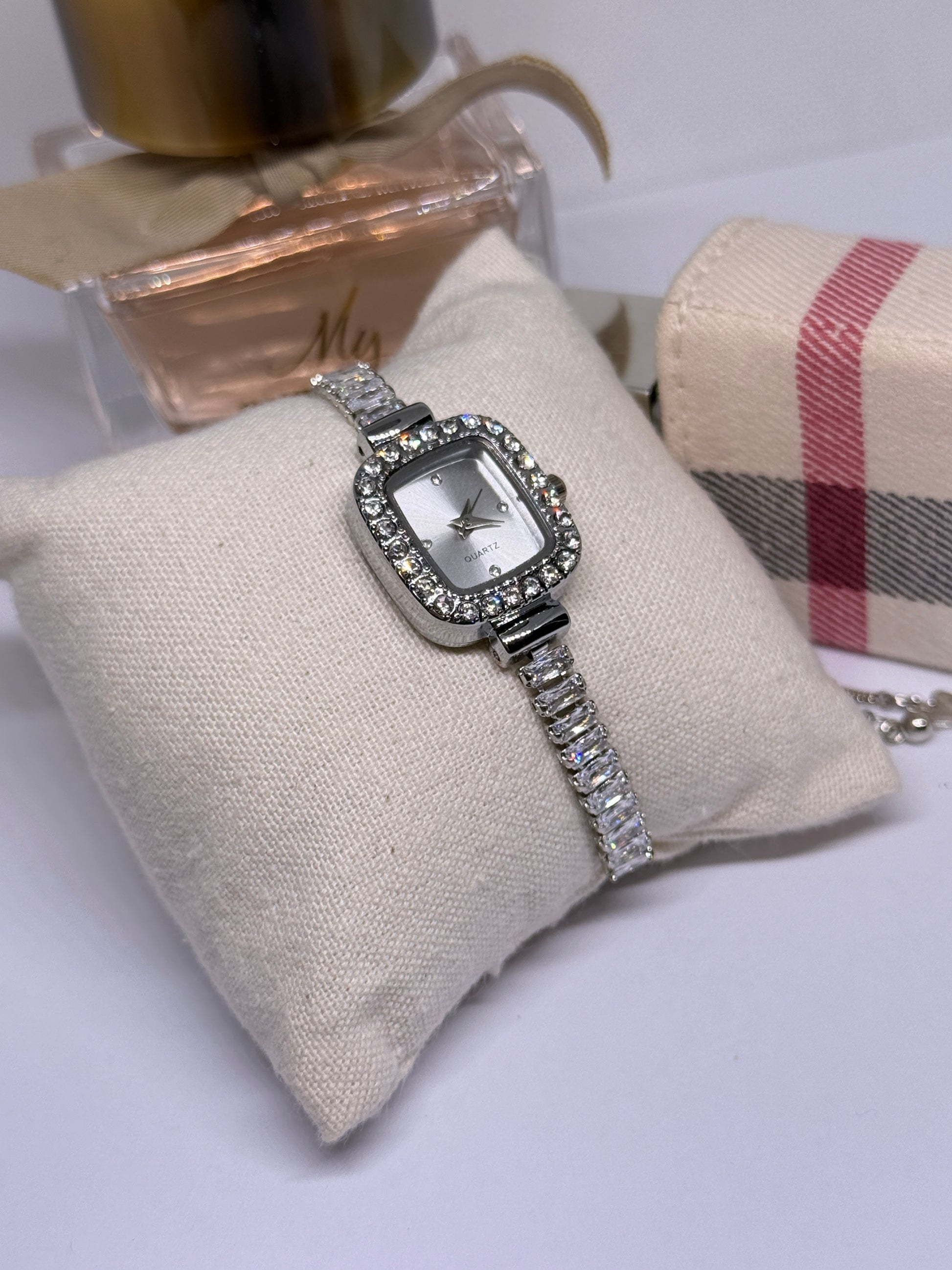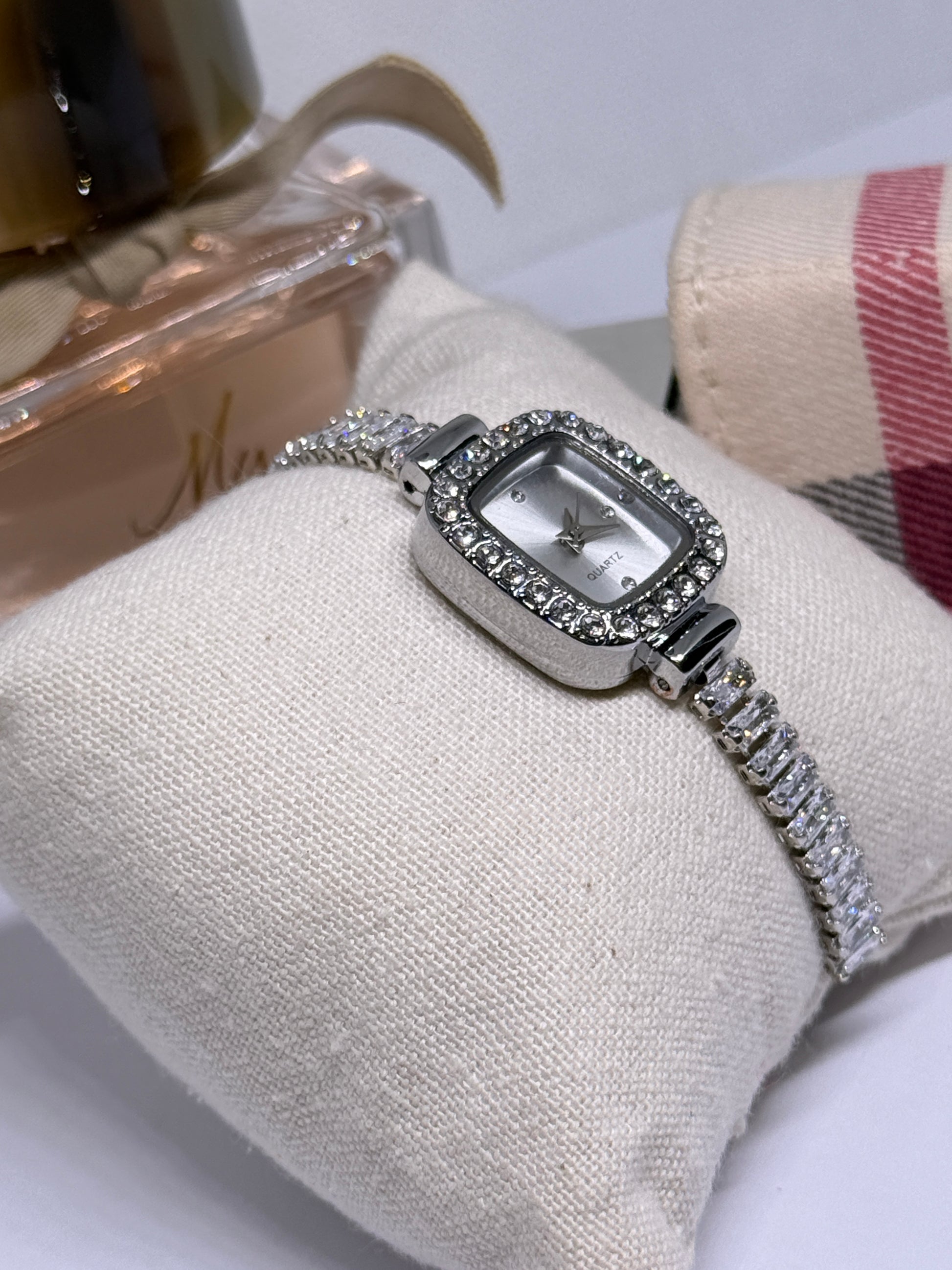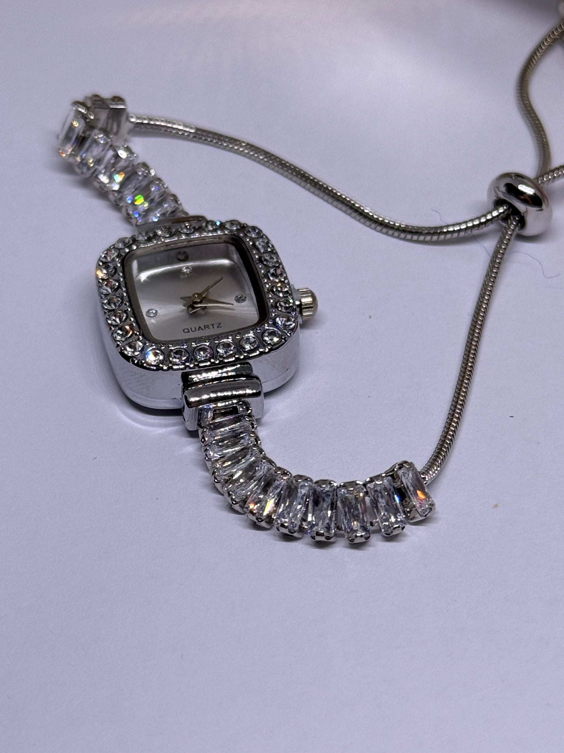 Silver tone rhinestone bracelet watch